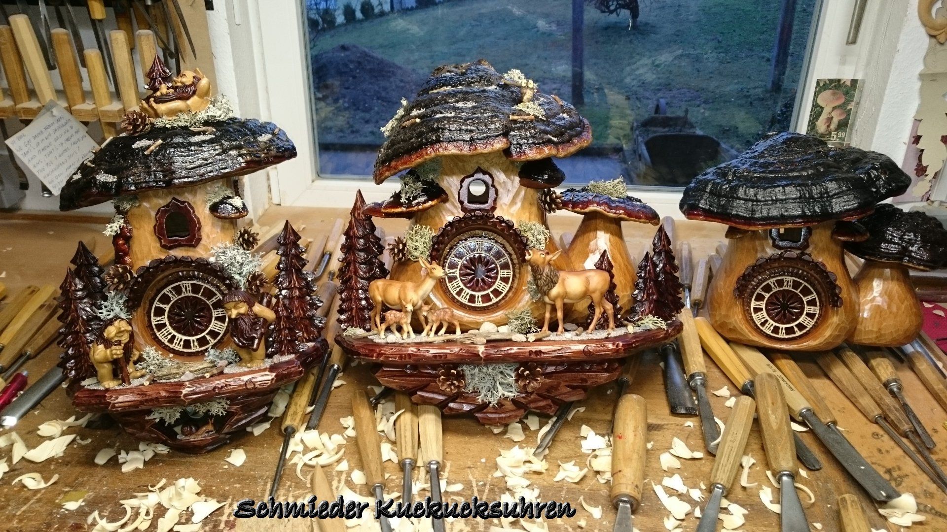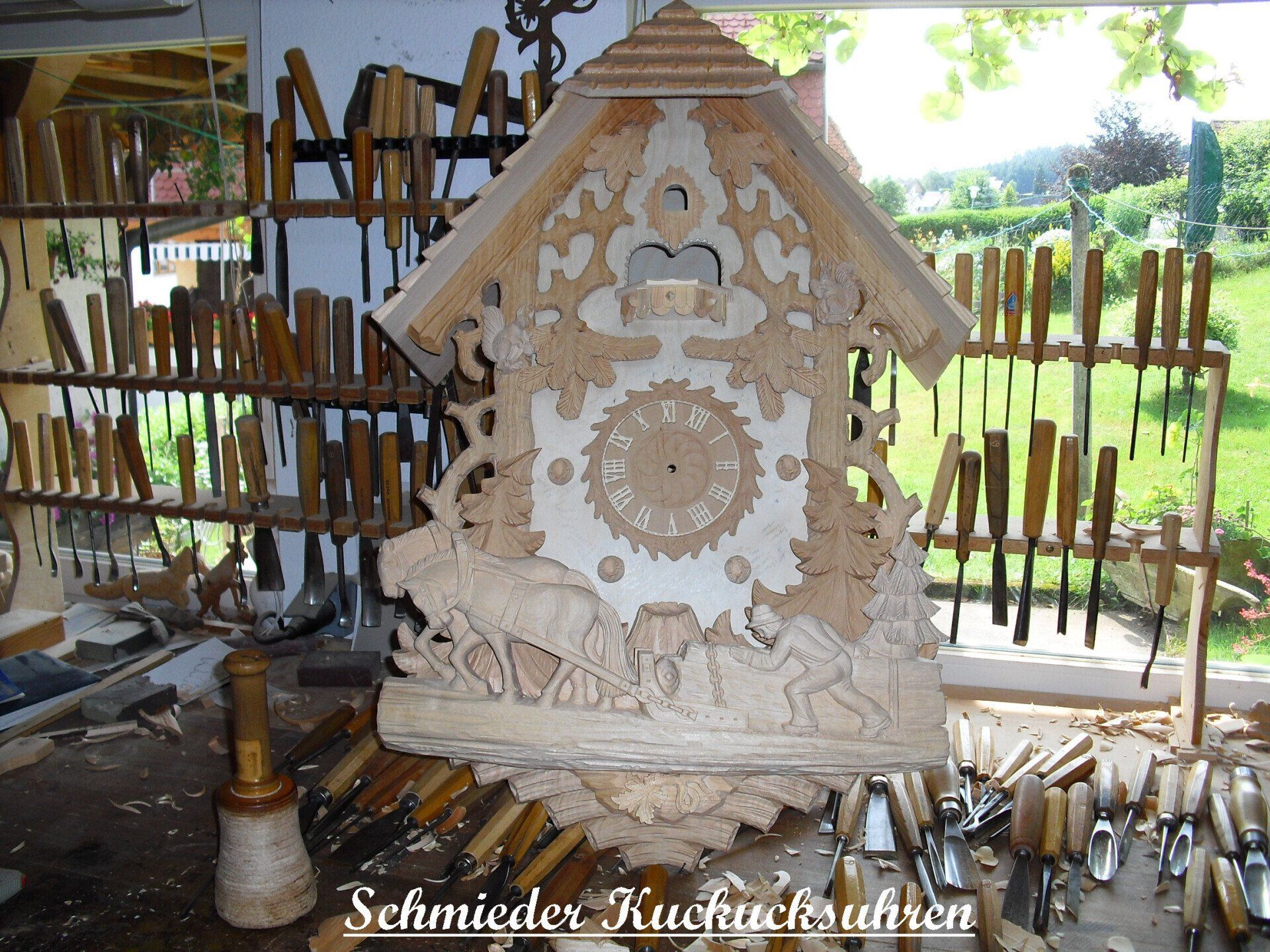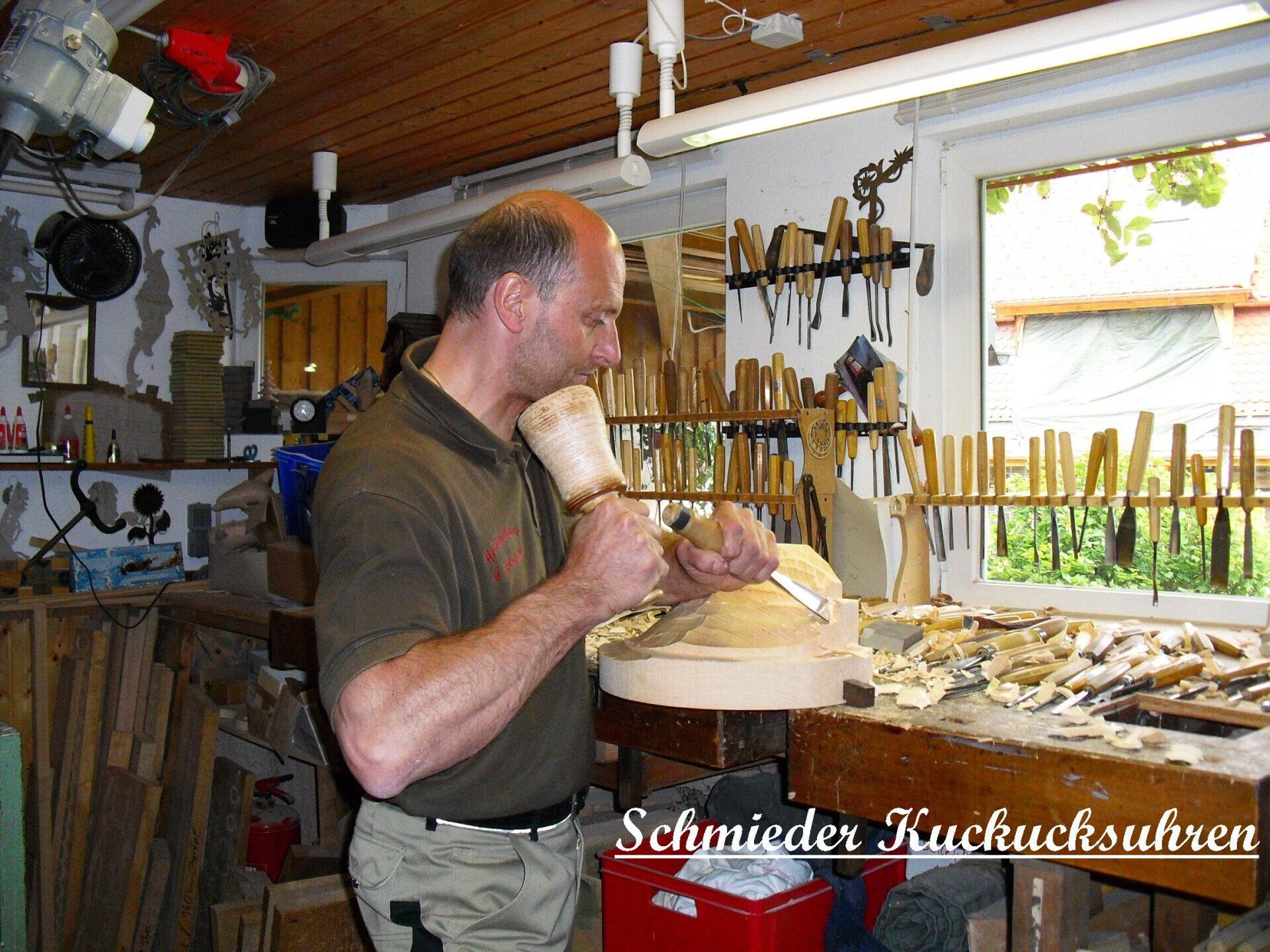 Anfertigen von einzigartigen handgeschnitzten Kuckucksuhren und Holzschnitzereien nach Kundenwunsch. Keine Massenware - alle Uhren sind aus massivem Holz geschnitzt - kein Pressholz oder ähnliches. Alle Kuckucksuhren haben ein mechanisches Uhrwerk "Made im Schwarzwald" mit einer gewachsten oder lackierten Oberflächenbehandlung - je nach Kundenwunsch! Einzigartig eben - wie jedes einzelne Holzstück!